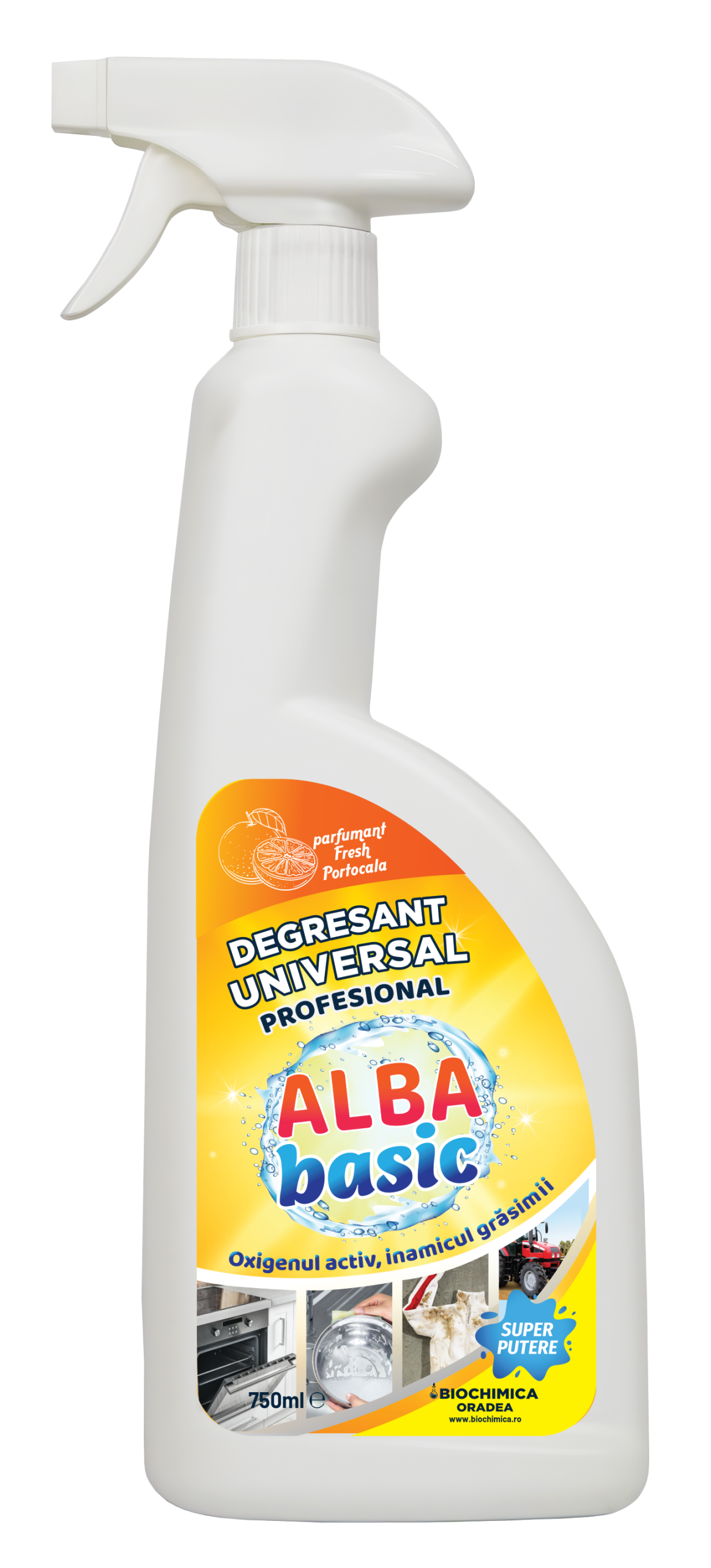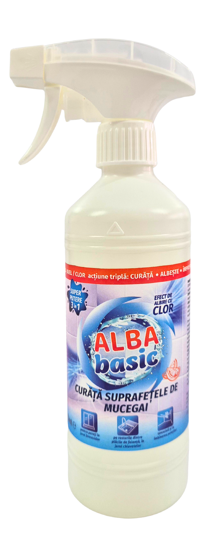 Produse AlbaBasic: AlbaBasic - Floral - 4 kg | 8 kg AlbaBasic - Fresh - 4 kg | 8 kg AlbaBasic - detergent lichid - 1,6L | 3,2L AlbaBasic - soluție pentru geamuri - 750 ml AlbaBasic - degresant universal - 750 ml AlbaBasic - degresant universal - 750 ml AlbaBasic - detergent vase cu măr - 1L AlbaBasic - detergent vase cu lămâie - 1L AlbaBasic - Înălbitor 1L | 2L AlbaBasic - Antimucegai 500 ml AlbaBasic Gel clor toaletă 1L