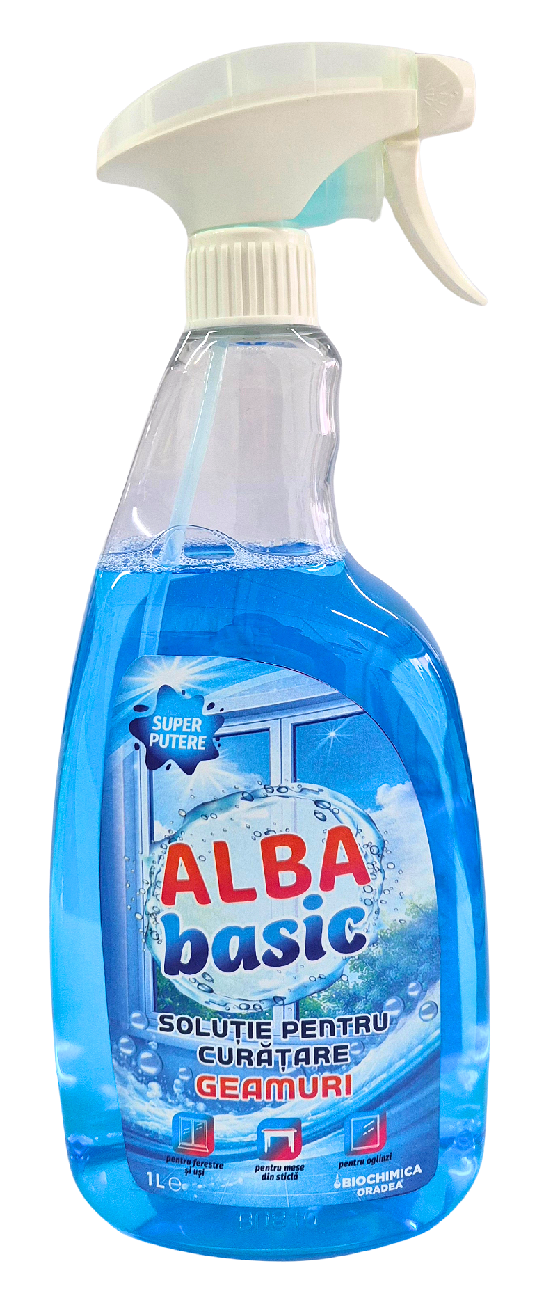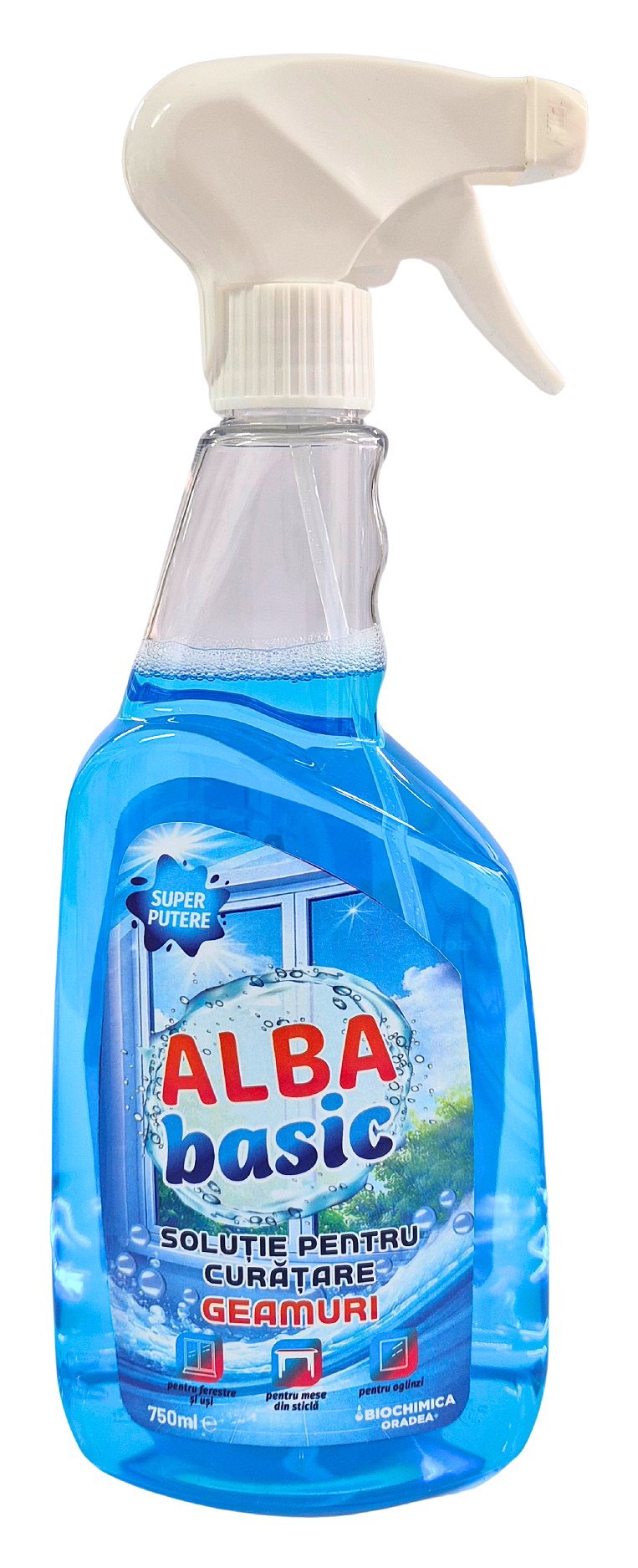 - Pulverizați soluția ALBA BASIC direct pe suprafața de sticlă sau pe o lavetă curată.